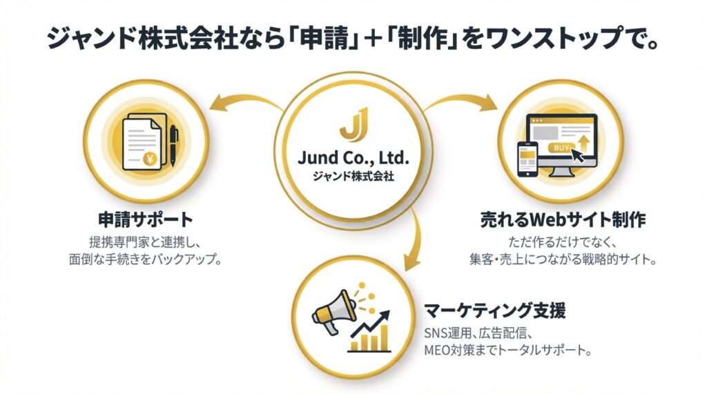 ジャンド株式会社なら「申請サポート」+「制作」をワンストップで