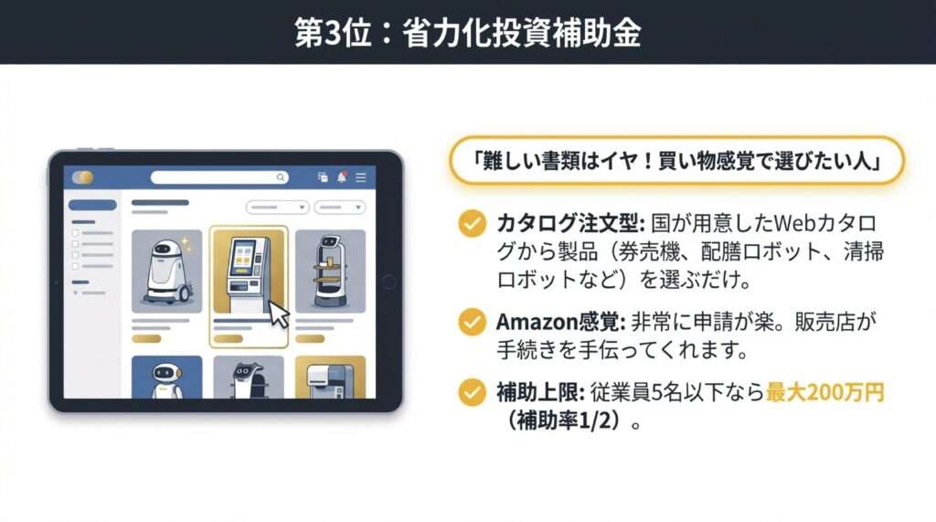 🥉 第3位:省力化投資補助金(カタログ注文型)