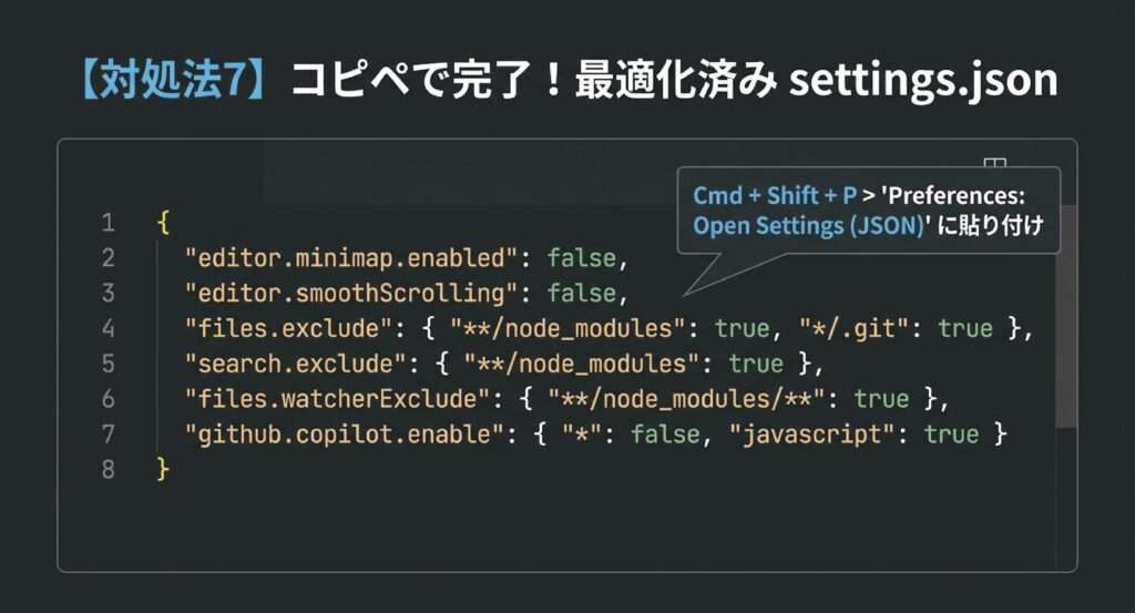 【対処法7】settings.jsonを最適化する