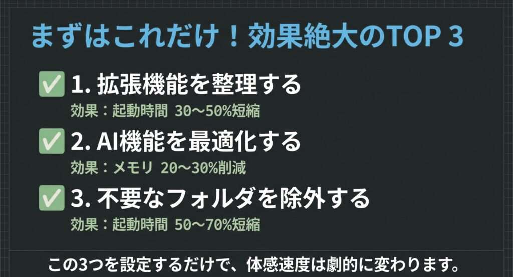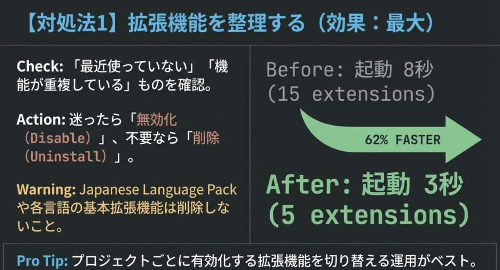 - 拡張機能を整理する(起動時間30〜50%短縮)